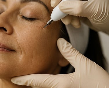 El Plasma Fibroblast es un procedimiento no quirúrgico que utiliza un dispositivo especializado (Plamere) para generar una descarga de plasma que estimula la producción natural de colágeno y elastina. Esta técnica permite tensar, alisar y rejuvenecer la piel sin bisturí ni inyecciones, ideal para quienes buscan resultados visibles de lifting facial no invasivo.